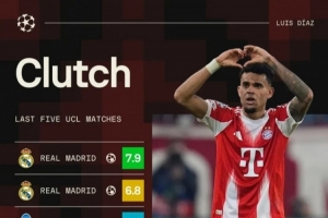 大场面发挥!路易斯·迪亚斯连续5场欧冠比赛参与进球